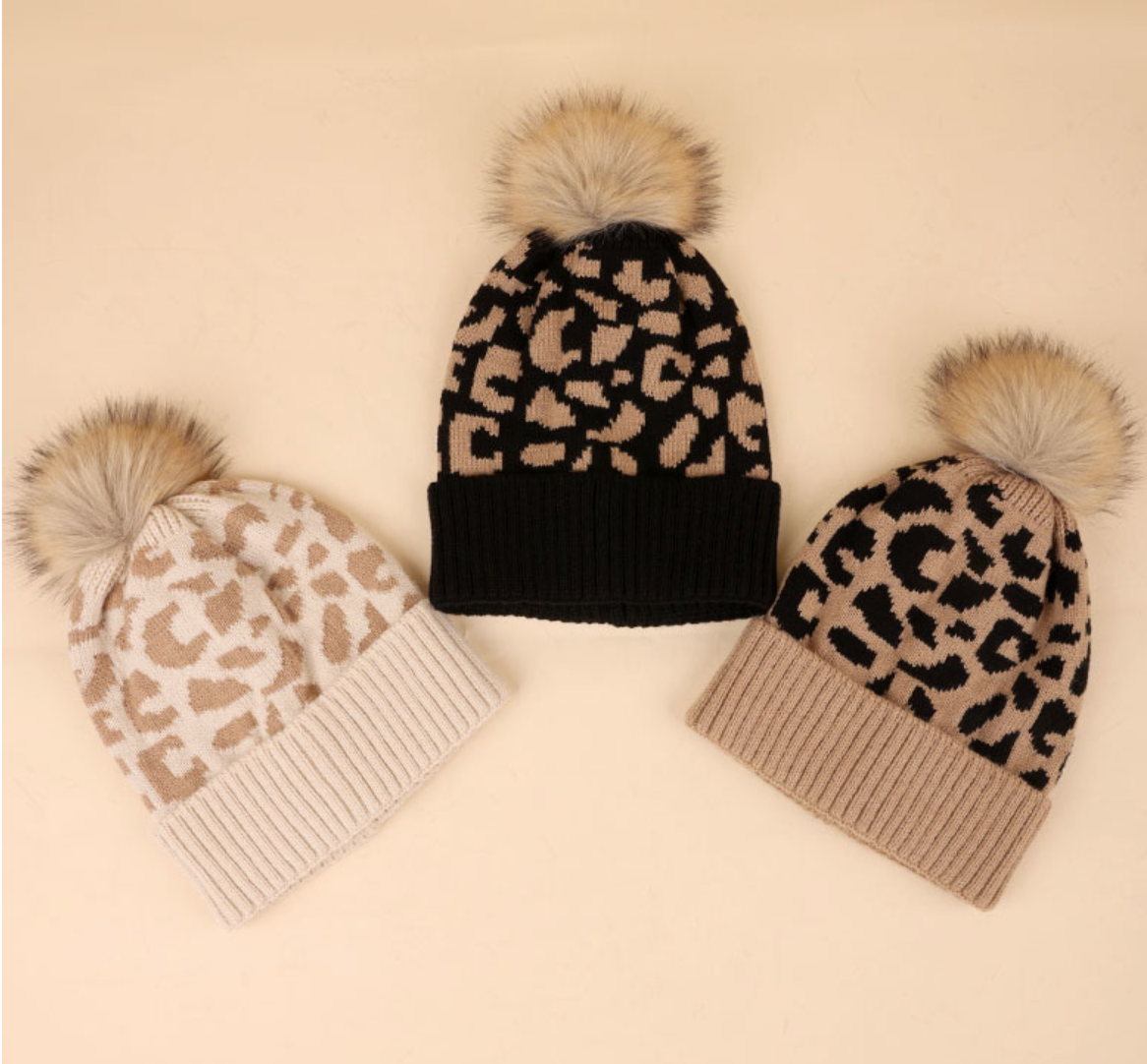 Leopard Pom Pom Beanie-3 Color Options